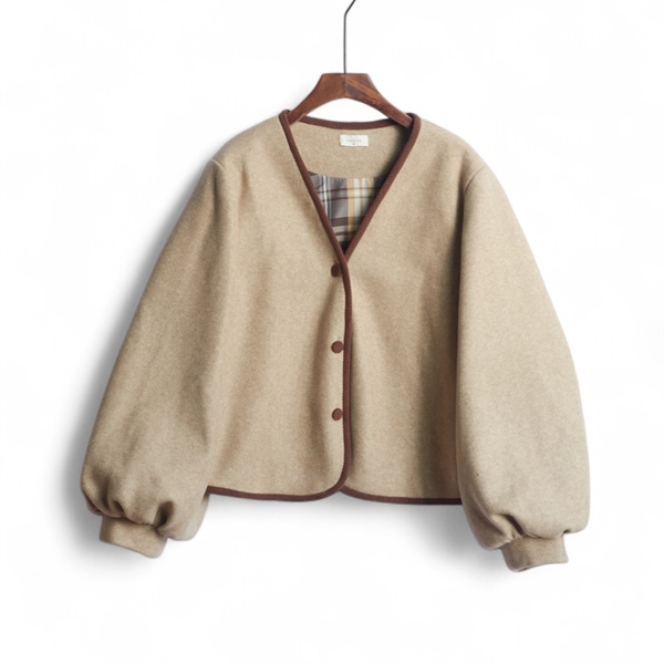Coat Dạ Camel Tay Bồng Viền Nhung