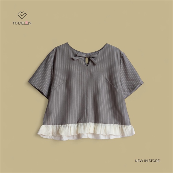 * Chi tiết: Áo thiết kế vạt bèo, cổ phối nơ