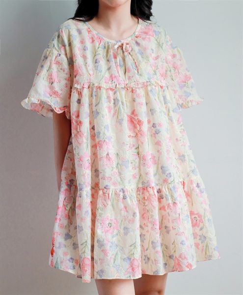 * Màu sắc: Nền váy kem hoa tiết hoa màu hồng