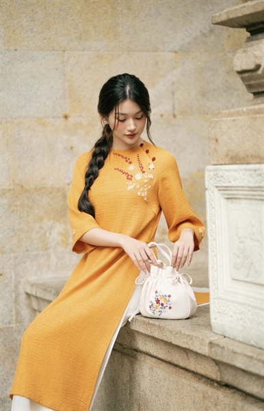 Áo Dài Đũi Voan 2 Tầng Thêu Hoa